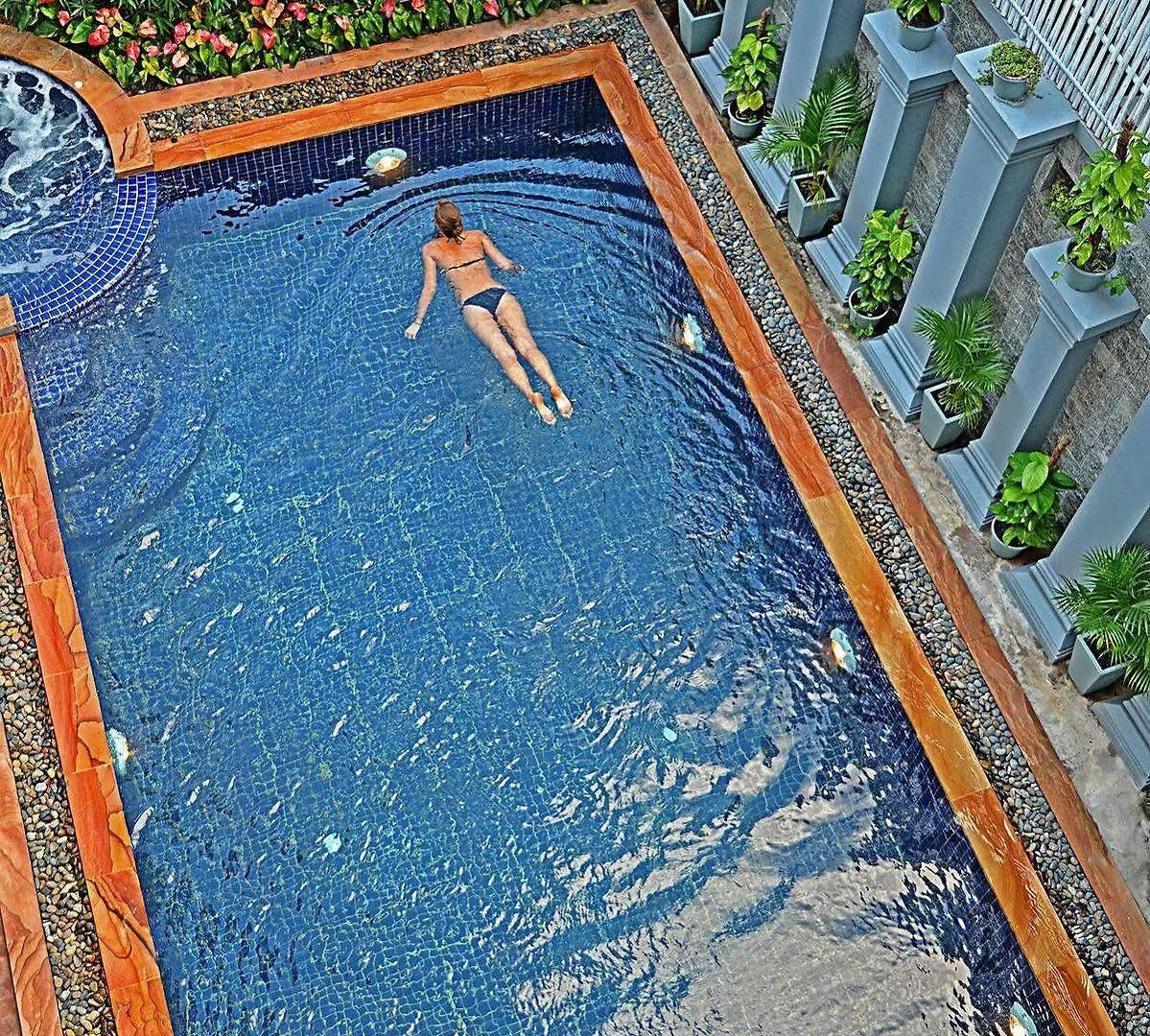 Le camere lussuose, i servizi incredibili, la posizione ottima. A 15 minuti a piedi dal centro di Siem Reap. La cucina del bar sky era buona.